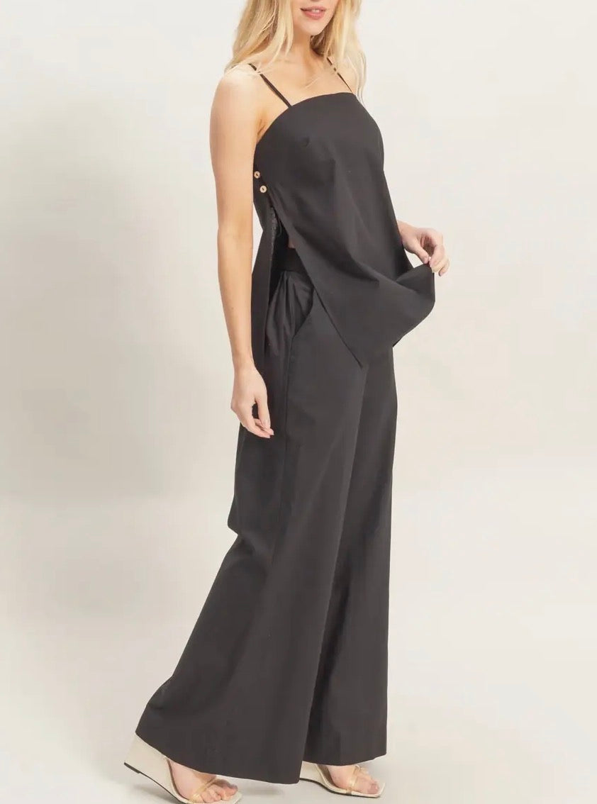 Black spaghetti strap top & wide leg pants