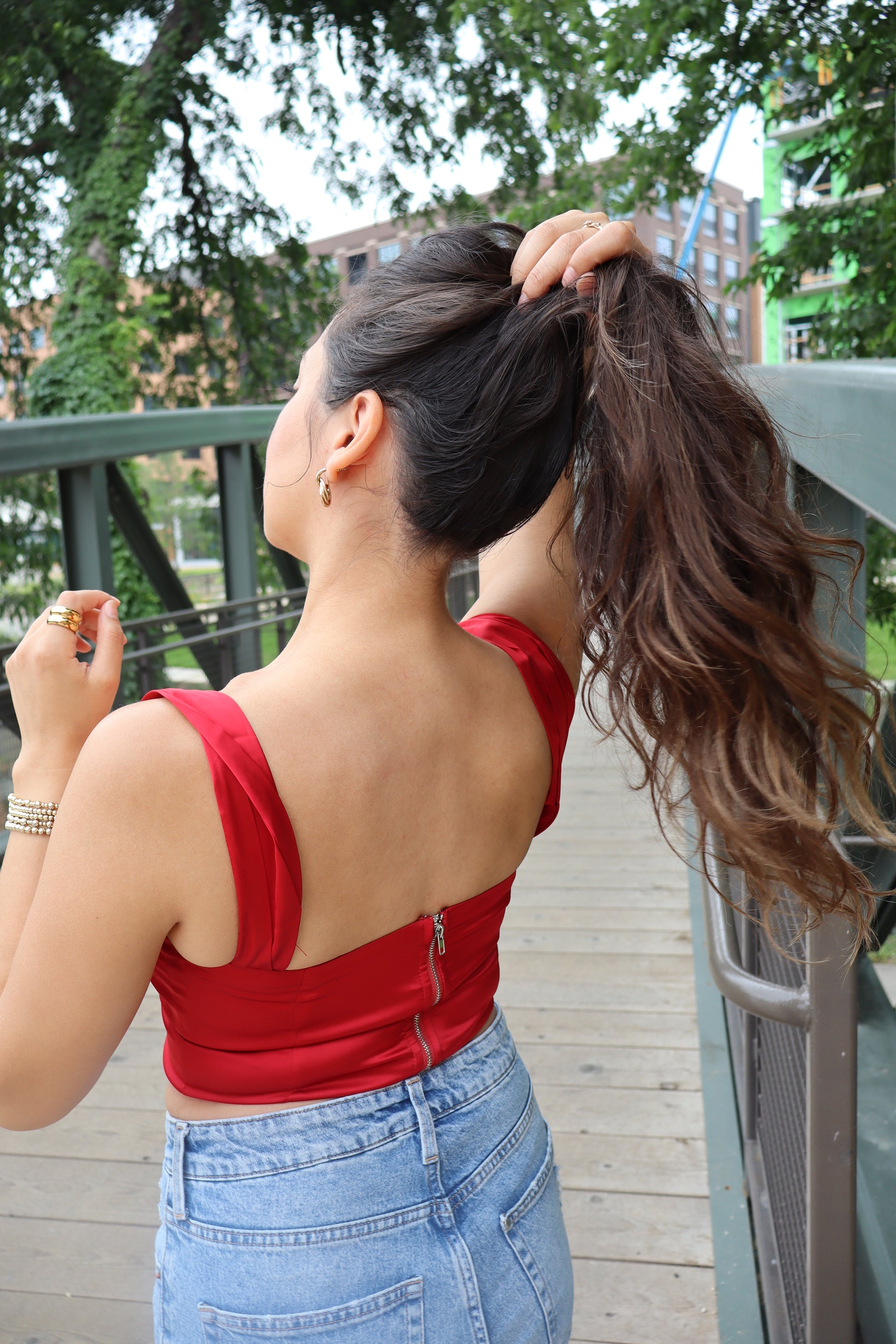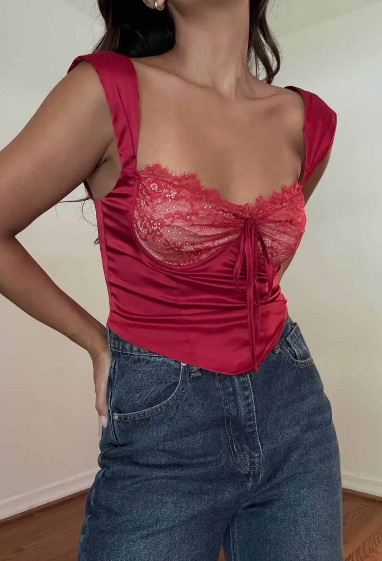 Sleeveless lace satin corset top